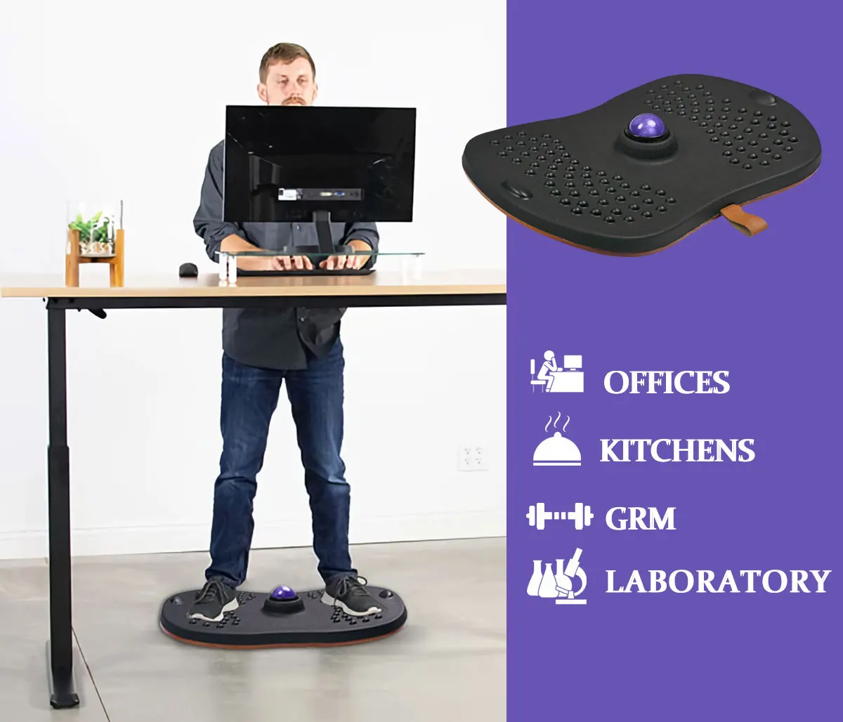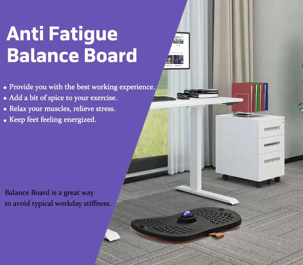 Keeps your body and mind engaged, increases focus, improves productivity, and prevents soreness, fatigue and back pain that results from standing still for hours at a time at your office desk. The balance board is and ideal for standing desks and stability and balance exercises Fluid rocking motion while standing on the board creates low-impact movement that engages stabilizing muscles in the back, core, legs and ankles while working, studying or exercising Built with an ergonomic design that promotes neutral positioning between the ankles while the honeycomb non-slip texture provides a secure base on both hard floors and carpet, keeping your feet stable and secure |