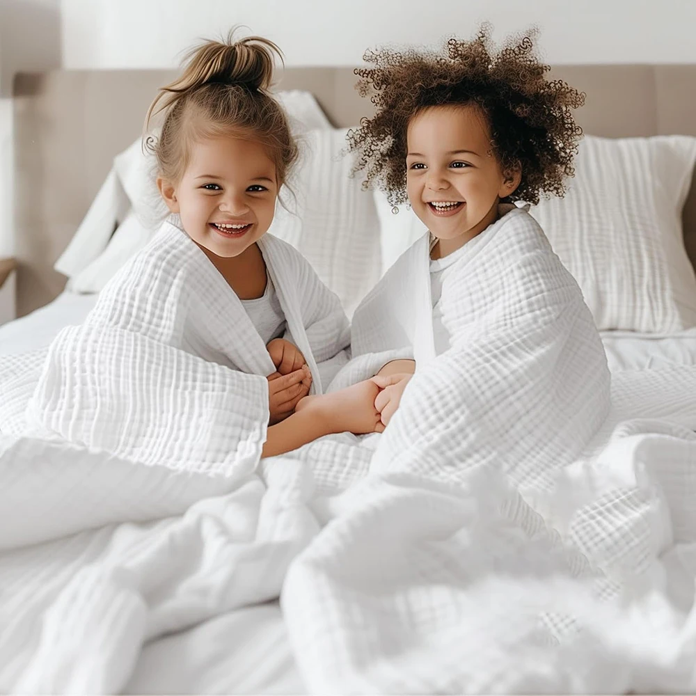 Skin-friendly & Cooling Comfort:Our 6-layer muslin blanket combines breathability with natural moisture-wicking properties; Perfect as a spring throw blanket; The temperature-regulating design maintains cool comfort during summer blanket season, while its gauze layering delivers lightweight, year-round coziness as your everyday essential.