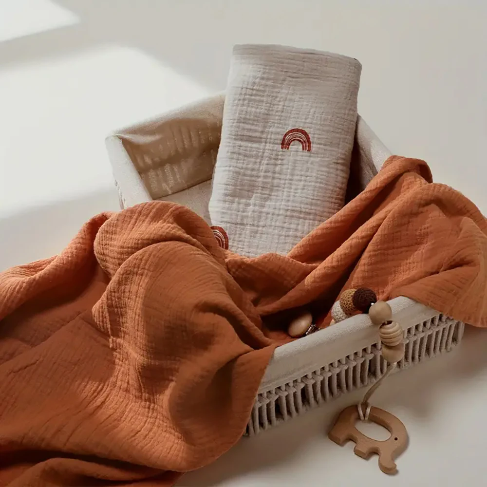 100% Cotton Muslin Blanket: Indulge in the gentle embrace of our cotton blanket; Designed with special waffle weaving techniques; These lightweight and softness gauze blankets ensure a cozy yet breathable feel; Cool blankets for hot sleepers; a versatile neutral blanket, ideal for sensitives; and perfect for co-sleeping with your little one.