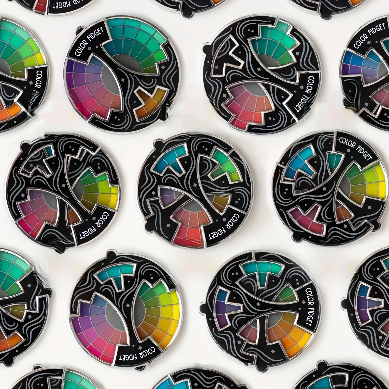 360° Rotating Color Fidget Enamel Pin& Keychain - Relax Sensory with 8 Color, Christmas Day Gifts, Focus Aid Tool, Sleek Design
