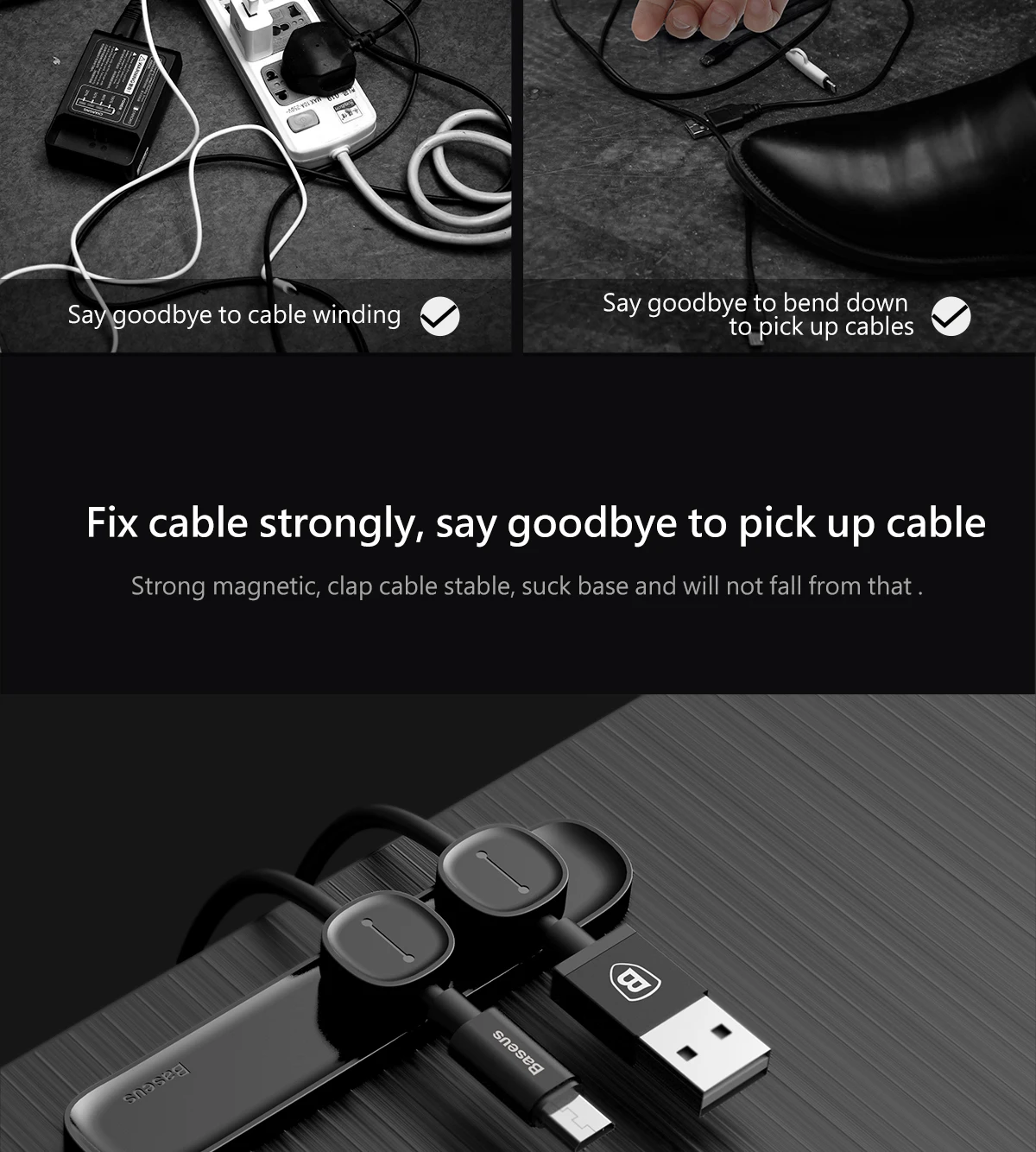Baseus Magnetic protector Cable Clip Desktop Tidy Cable Organizer USB Charger Cable Holder Cable management
