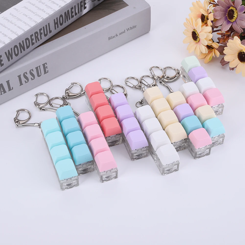 Keyboard Fidget Keychain 4 Keys Keyboard Decompression Toys with LED Light Keyboard Clicker Toy DIY Button Stress Relief Toys