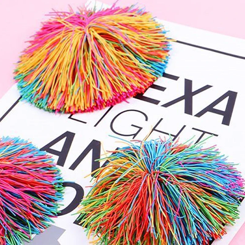 Rainbow Stress Balls for Kids & Adults - Colorful Stretchy String Sensory Fidget Toys for Anxiety Relief and Play