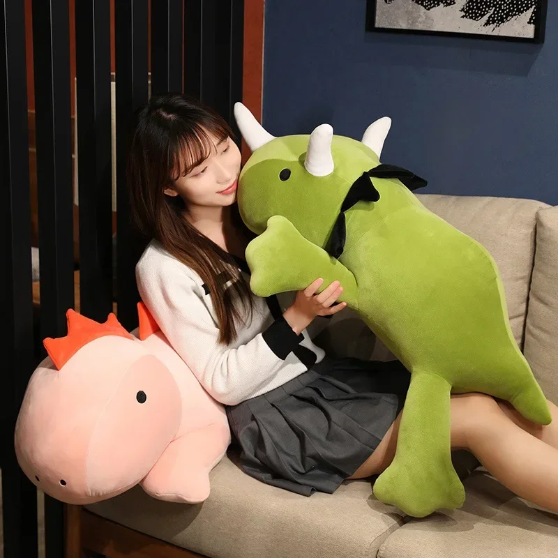 Stuffed Animal Toys Soft Weighted Dino Plush Toy Cute Green Pink Dinosaur Pillow for Sleeping Comfort Girls Boys Birthday Gift