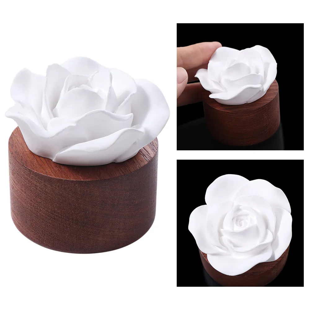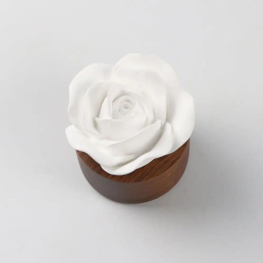 Captivating Rose Flower Shape: Bring the beauty of nature into your living space with our Passive Rose Flower Diffuser. Its chic flower-shaped top paired with a natural wood base adds a touch of elegance to your home or office.